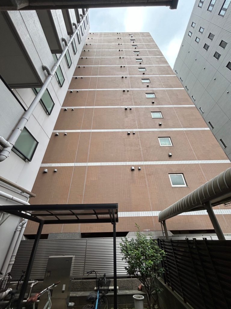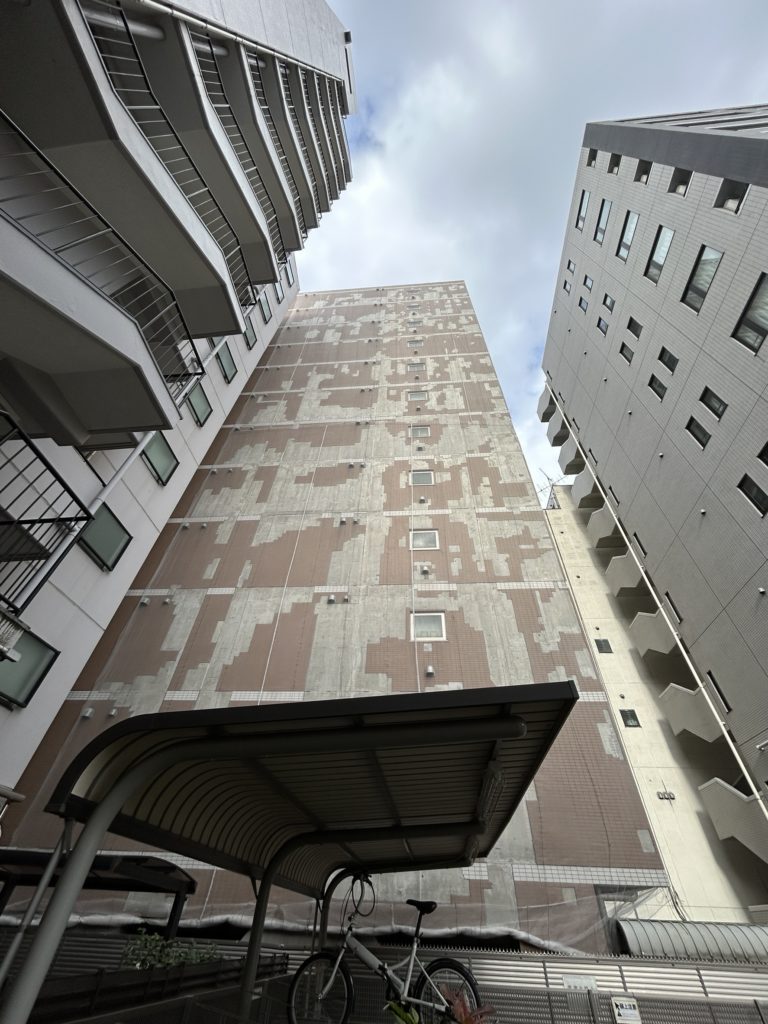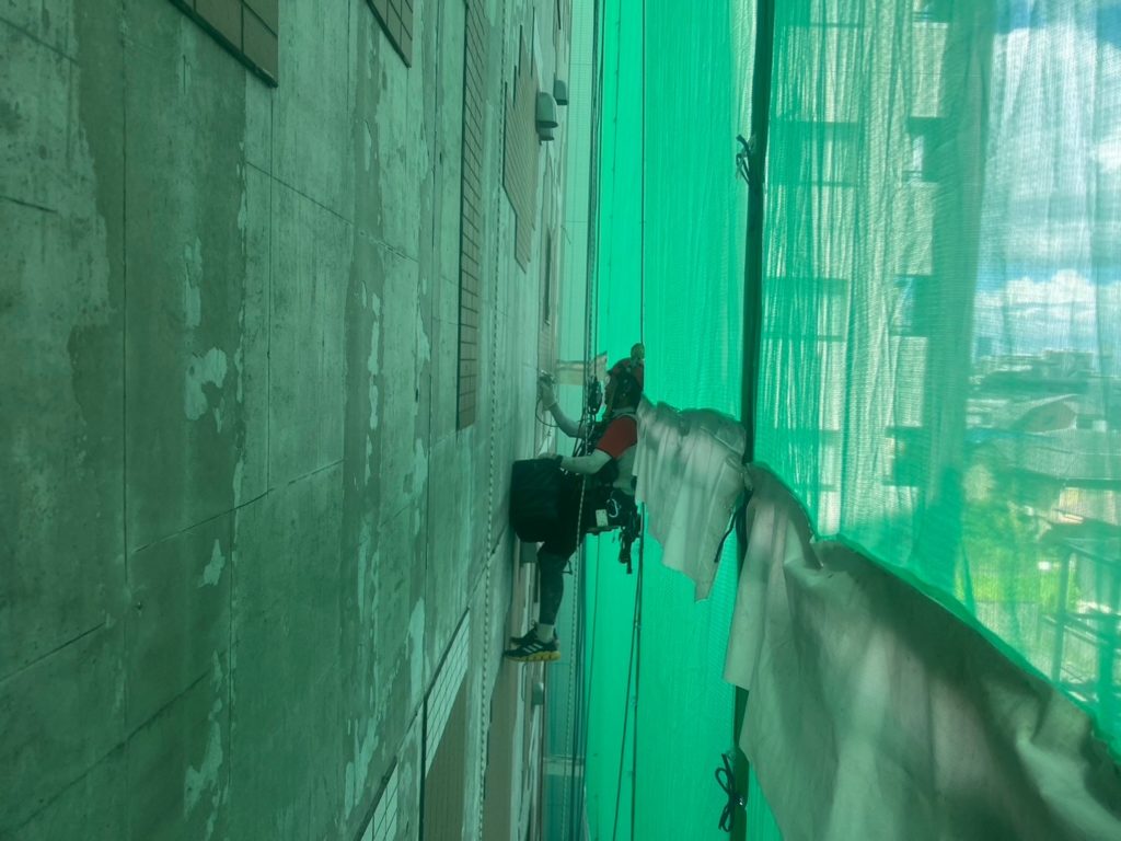 2026.01.19 お知らせニュースブログ 45二丁タイル 3万枚張替工事 今回はタイル張替工事のご紹介です。 全工程、ロープアクセス工法にて3万枚全てのタイル張替工事を施工致しました。 空中での工具やタイルの落下に細心の注意を払い、作業を安全に完了することが出来ました。